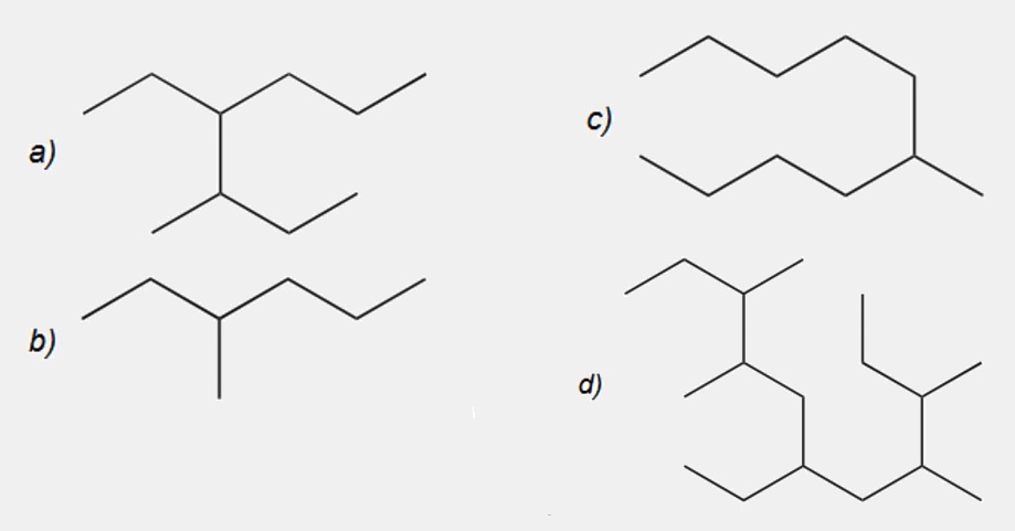 - la chaîne carbonée, disposée en zigzag, est représentée par une ligne brisée