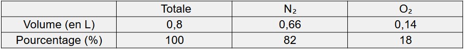 4) Donner la composition air, en pourcentage,d’après les valeurs de l’expérience.