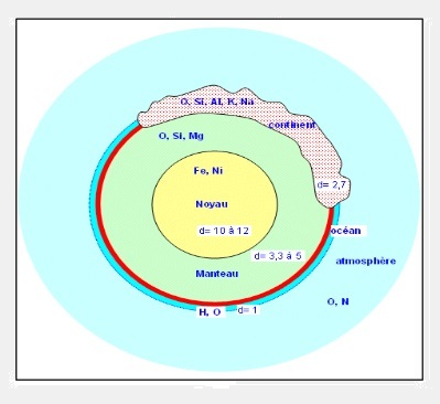 Les éléments se sont répartis par densité, on a donc une organisation en couches, de composition chimique différente, les éléments les plus dense en profondeur et les éléments les moins dense en surface.
