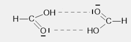 Représenter la liaison hydrogène entre deux molécules d’acide méthanoïques.