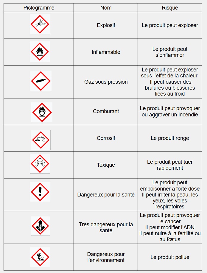 1) Identifier les pictogrammes.