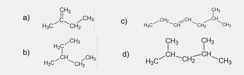 Dessiner la formule semi-développée des molécules ci-dessous :