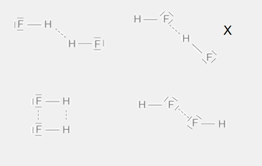 Quelle est la représentation correcte de la liaison hydrogène entre deux molécules de HF ?