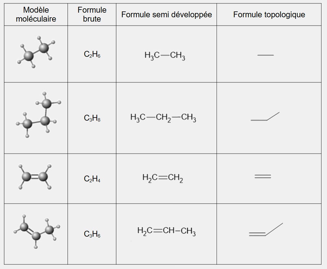 La formule topologique d’une molécule correspond à une représentation simplifiée de sa structure. Elle utilise les conventions suivantes :