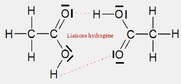 La molécule d’acide éthanoïque peut former des liaisons hydrogène.