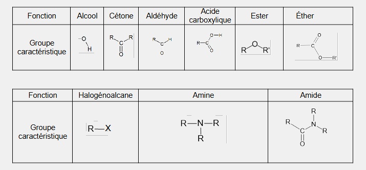 Les groupes caractéristiques sont représentés de façon semi-développée.
