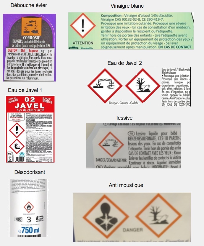 5) Pourquoi les deux eau de javel sont des pictogrammes différents ?