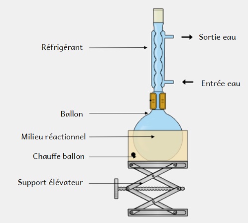 Ce montage permet d’accélérer les réactions, grâce au chauffage, tout en évitant les pertes de matières dû à la vaporisation.